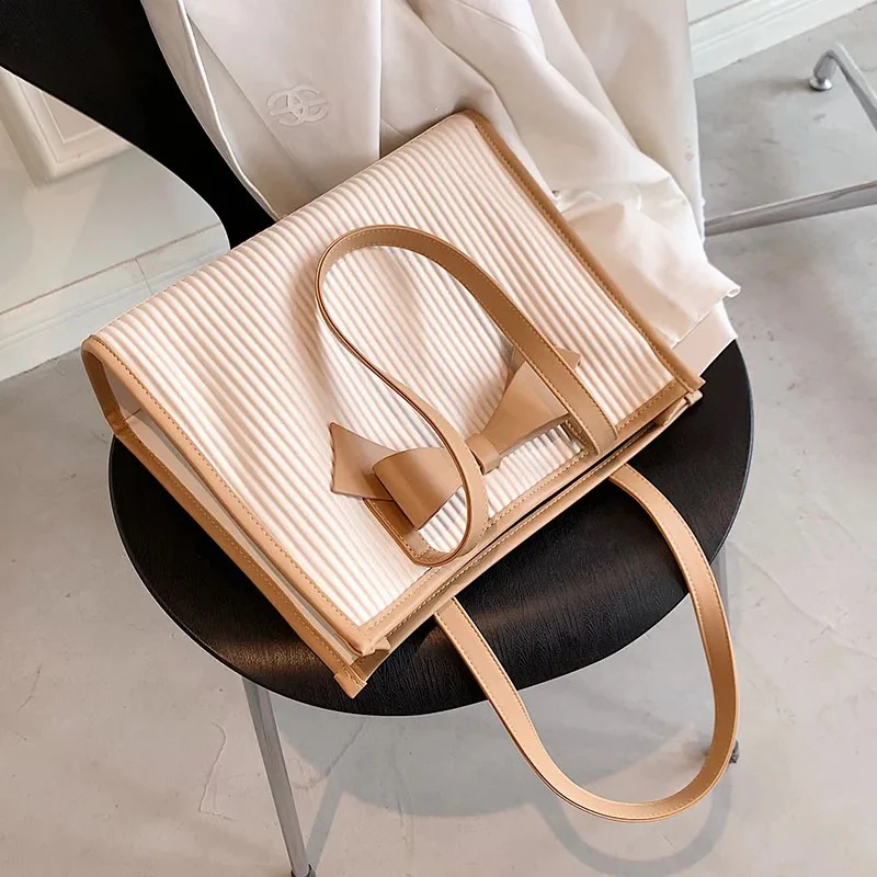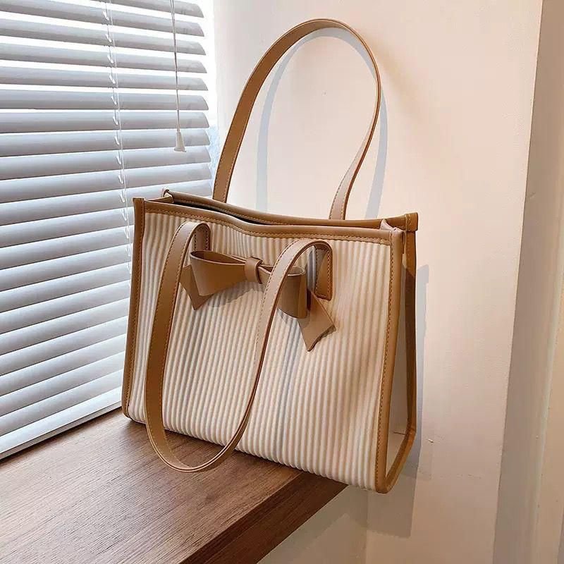 Elevate your everyday style with the Luxe Ribbon Tote Bag — a perfect blend of elegance, simplicity, and functionality. Designed with a unique pleated texture and a signature bow detail, this tote adds a soft feminine touch to any outfit.