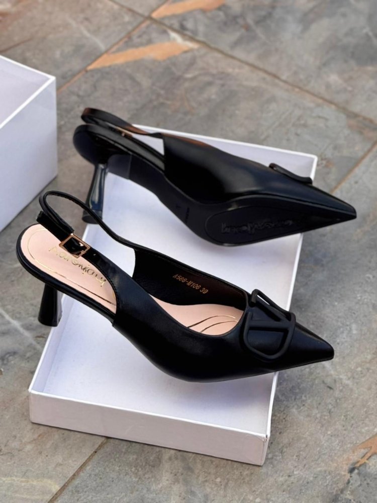Refined Silhouette: A sharp pointed toe paired with a structured slingback strap for a secure, elegant fit.